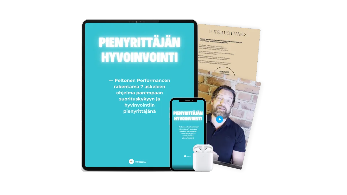 Peltonen Performance -nimisen yrityksen rakentama käytännöllinen, nopea ja todistetusti toimiviin malleihin perustuva malli juuri pienyrittäjän hyvinvoinnin ja jaksamisen parantamiseen. Sisältää verkkokurssin ja työkirjan.